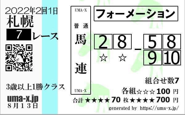 | 2021年 札幌 3上1勝クラス | 3 | 7 | 11 | 2 | 5 | 9 | 12 | 10 | 6 | 2 | 2 | 12 | 5 | 1 | 6 | 2 | 12 | 9 | 5 | 3 | 2 | 3 | 5 | 7 | 4 | 2 | 5 | 7 | 3 | 4 | 2 | 12 | 9 | 3 | 7 |