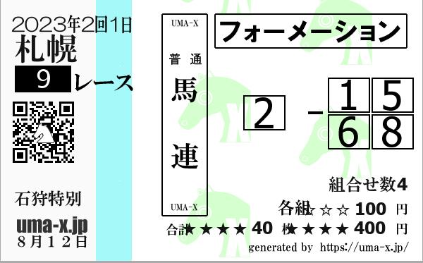 | 2022年 札幌 石狩特別 | 1 | 7 | 5 | 3 | 2 | 1 | 5 | 7 | 2 | 3 | 1 | 7 | 4 | 3 | 2 | 1 | 7 | 3 | 4 | 5 | 7 | 1 | 4 | 3 | 5 | 7 | 4 | 1 | 3 | 5 | 1 | 7 | 4 | 5 | 3 |