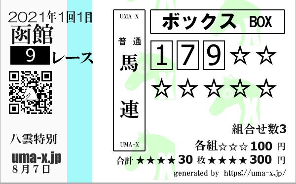 | 2020年 函館 八雲特別 | 6 | 2 | 1 | 7 | 5 | 1 | 8 | 2 | 4 | 5 | 9 | 2 | 1 | 7 | 5 | 5 | 2 | 1 | 3 | 7 | 2 | 1 | 5 | 9 | 7 | 2 | 3 | 5 | 1 | 8 | 2 | 1 | 5 | 7 | 8 |