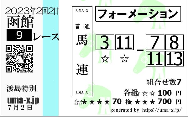 | 函館 | 中山 | 京都 | 中京 | 東京 | 小倉 | 阪神 | 福島 | 新潟 | 札幌 | |||||||||||||||||||||||||||||||||||||||||