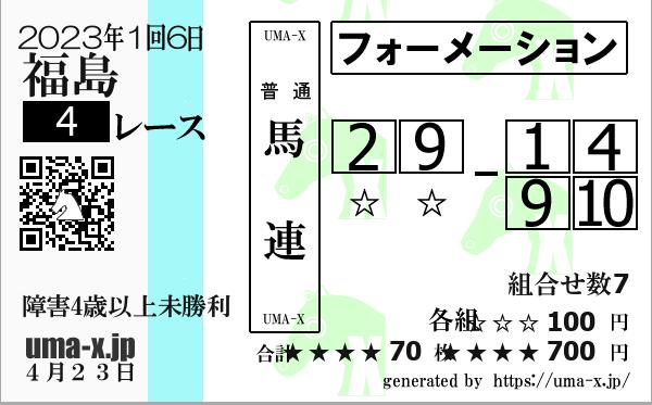 | 2023年 福島 障害4上未勝利 | 1 | 3 | 4 | 9 | 2 | 7 | 3 | 9 | 2 | 4 | 8 | 20 | 2 | 4 | 6 | 8 | 20 | 4 | 3 | 5 | 1 | 3 | 2 | 4 | 5 | 2 | 3 | 1 | 4 | 5 | 8 | 2 | 20 | 3 | 1 |