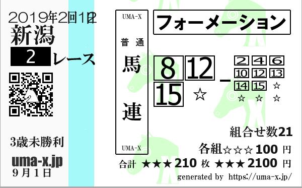 | ユイノムサシ 牡3 美浦 | 4 | 1:54.9 | 38.5 |