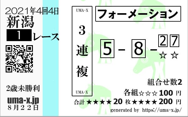 | 2021年 新潟 2歳未勝利 | 8 | 4 | 1 | 1 | 4 | 8 | 1 | 8 | 4 | 4 | 1 | 3 | 1 | 4 | 8 | 1 | 4 | 3 | 1 | 4 | 8 |