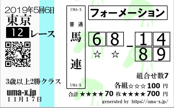 | 2019年 東京 3上2勝クラス | 2 | 6 | 4 | 1 | 7 | 1 | 7 | 5 | 3 | 2 | 2 | 1 | 4 | 7 | 6 | 1 | 6 | 7 | 3 | 4 | 3 | 1 | 6 | 2 | 4 | 1 | 6 | 3 | 4 | 7 | 1 | 7 | 2 | 6 | 4 |