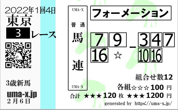 | サンマルディライト 牡3 美浦 | 4 | 1:41.6 | 37.1 |