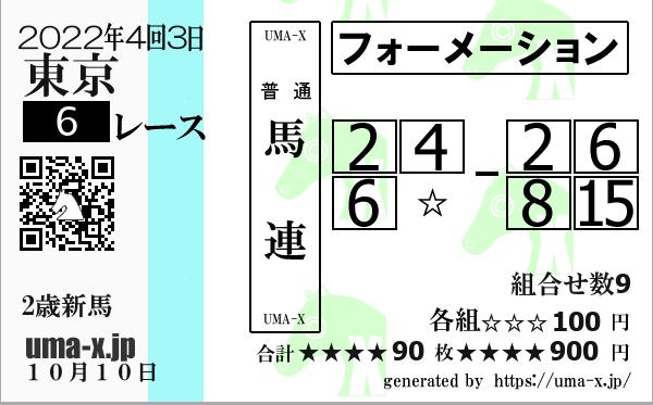 | ピンポイントドロー 牡2 美浦 | 7 | 1:26.2 | 36.9 |