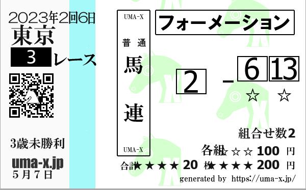 | コルテローザ 牝3 美浦 | 3 | 2:19.6 | 35.5 |