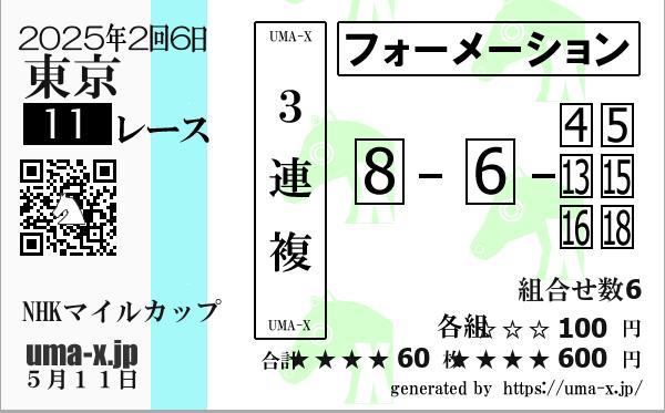 | マイネルチケット | 1 | 2 | 1 | 2 | 50.00 | 1 | 1 | 1 | 1 | 50.00 | 0 | 1 | 0 | 1 | 50.00 | ||||||||||||||||||||||||||||||||||||||||