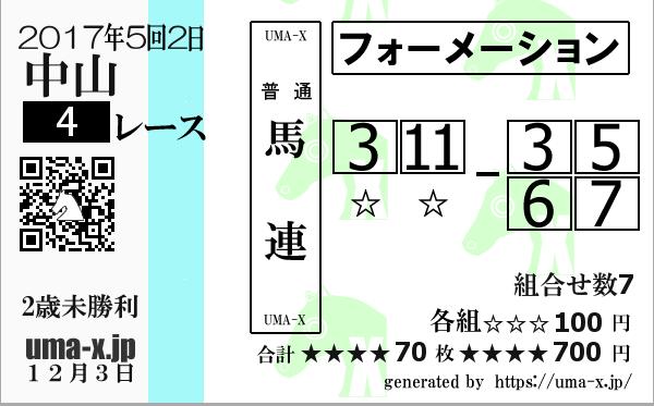 | 2015年 中山 2歳未勝利 | 5 | 7 | 1 | 2 | 4 | 5 | 3 | 6 | 2 | 9 | 2 | 7 | 5 | 1 | 4 | 1 | 5 | 12 | 2 | 7 | 7 | 1 | 5 | 2 | 13 | 2 | 1 | 7 | 5 | 12 | 5 | 1 | 2 | 7 | 4 |