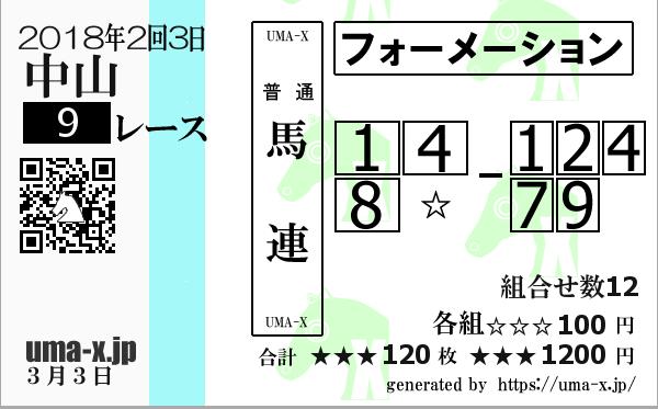 | 2015年 中山 潮来特別 | 4 | 7 | 9 | 3 | 1 | 1 | 3 | 4 | 7 | 8 | 1 | 3 | 4 | 9 | 8 | 1 | 3 | 2 | 4 | 9 | 1 | 3 | 6 | 11 | 9 | 1 | 8 | 6 | 3 | 4 | 1 | 3 | 2 | 9 | 8 |