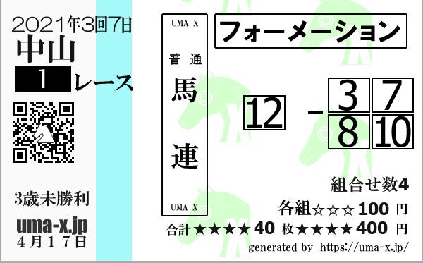 | ピットフォル 牝3 美浦 | 4 | 1:12.4 | 37.6 |