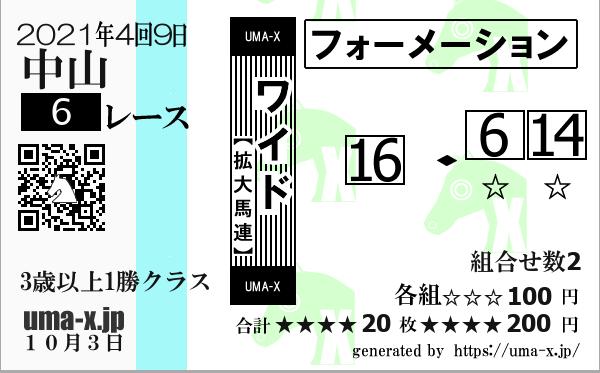 | キミワテル 牡3 美浦 | 1 | 1:11.0 | 36 |