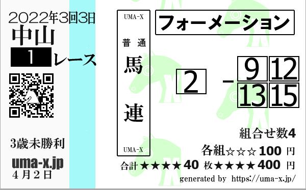 | バイロイト 牝3 美浦 | 3 | 1:54.7 | 38.6 |