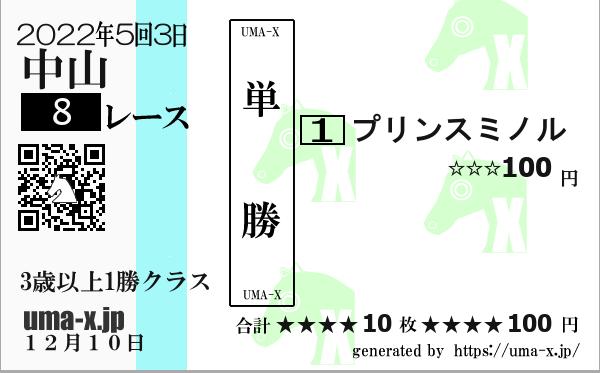 | 2022年 中山 3上1勝クラス | 10 | 4 | 1 | 5 | 8 | 8 | 5 | 10 | 2 | 7 | 7 | 5 | 2 | 8 | 6 | 8 | 2 | 5 | 7 | 1 | 5 | 3 | 8 | 7 | 6 | 2 | 3 | 8 | 5 | 7 | 7 | 8 | 2 | 5 | 1 |