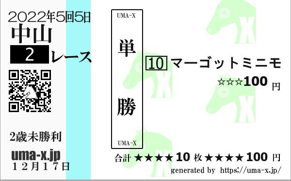 | マーゴットミニモ 牝2 美浦 | 2 | 1:54.3 | 38.4 |