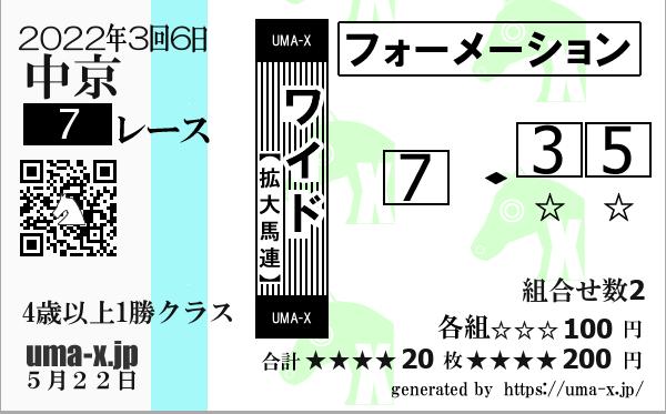 | 2022年 中京 4上1勝クラス | 7 | 5 | 6 | 9 | 4 | 7 | 7 | 2 | 5 | 2 | 7 | 5 | 5 | 2 | 3 | 2 | 5 | 7 | 7 | 2 | 1 |