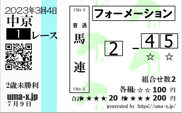 | 2021年 中京 2歳未勝利 | 2 | 4 | 1 | 9 | 4 | 5 | 4 | 1 | 7 | 4 | 1 | 5 | 4 | 1 | 5 | 4 | 1 | 5 | 4 | 1 | 5 |