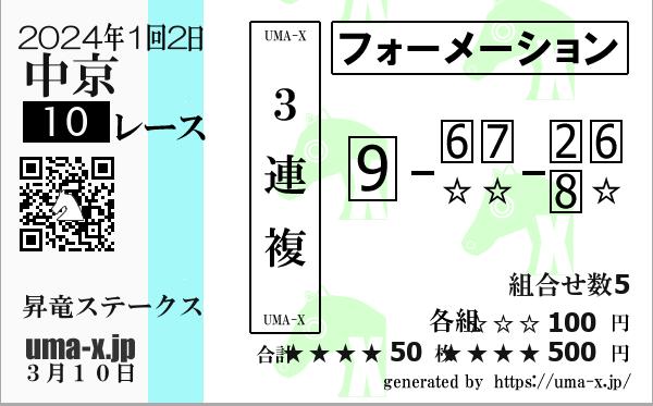 | 2020年 中京 昇竜S | 1 | 7 | 9 | 10 | 6 | 5 | 8 | 2 | 9 | 7 | 7 | 8 | 5 | 6 | 3 | 7 | 5 | 9 | 2 | 8 | 10 | 7 | 9 | 5 | 8 | 10 | 9 | 2 | 3 | 6 | 5 | 8 | 9 | 10 | 2 |