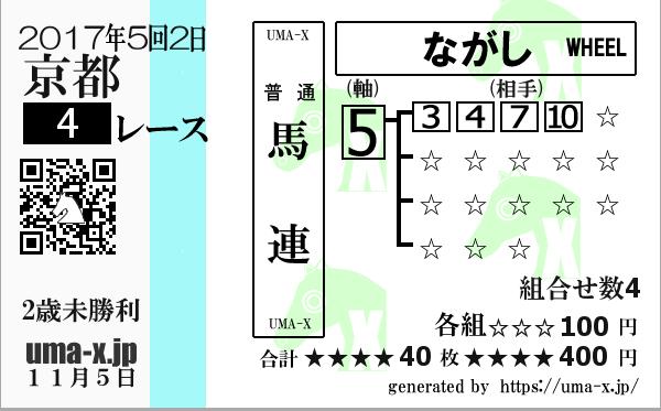 | 2017年 京都 2歳未勝利 | 7 | 5 | 11 | 1 | 12 | 11 | 7 | 2 | 5 | 6 | 11 | 7 | 12 | 5 | 10 | 6 | 11 | 9 | 7 | 1 | 11 | 7 | 1 | 5 | 6 | 11 | 1 | 7 | 4 | 5 | 11 | 7 | 1 | 5 | 6 |