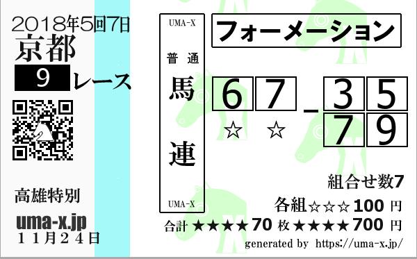 | 2017年 京都 高雄特別 | 11 | 2 | 6 | 9 | 8 | 7 | 2 | 4 | 3 | 1 | 6 | 2 | 5 | 4 | 12 | 3 | 5 | 2 | 4 | 7 | 5 | 6 | 2 | 4 | 7 | 3 | 4 | 1 | 5 | 11 | 6 | 2 | 5 | 3 | 4 |