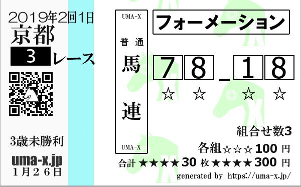 | 2019年 京都 3歳未勝利 | 3 | 1 | 2 | 3 | 16 | 1 | 3 | 4 | 14 | 3 | 1 | 16 | 3 | 4 | 1 | 3 | 4 | 1 | 3 | 2 | 7 |
