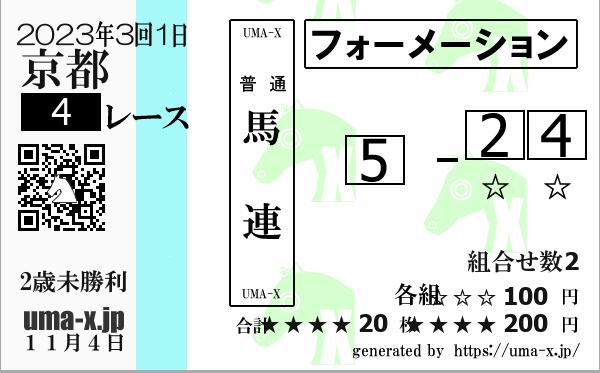 | 2023年 京都 2歳未勝利 | 2 | 1 | 3 | 1 | 4 | 2 | 2 | 1 | 4 | 1 | 2 | 4 | 1 | 2 | 4 | 1 | 2 | 4 | 1 | 2 | 4 |