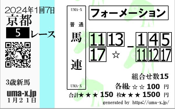 17吉村 圭司 | 6ワールドエース | -ホッコータピタン | 5 - 8 - 14 - 159 | 初 | 山本 能成 | 高昭牧場 | |||