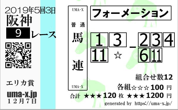 | 2014年 阪神 エリカ賞 | 4 | 8 | 9 | 5 | 3 | 12 | 6 | 1 | 5 | 4 | 6 | 8 | 4 | 3 | 9 | 4 | 1 | 12 | 5 | 8 | 4 | 9 | 6 | 1 | 12 | 4 | 3 | 12 | 1 | 6 | 4 | 8 | 3 | 6 | 1 |