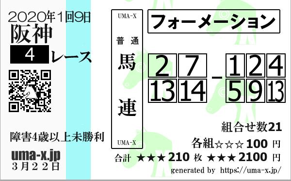 | 2019年 阪神 障害4上未勝利 | 6 | 13 | 7 | 9 | 14 | 3 | 6 | 14 | 11 | 2 | 9 | 1 | 11 | 13 | 4 | 2 | 4 | 1 | 11 | 6 | 1 | 4 | 11 | 2 | 7 | 2 | 1 | 7 | 4 | 3 | 14 | 8 | 1 | 2 | 4 |