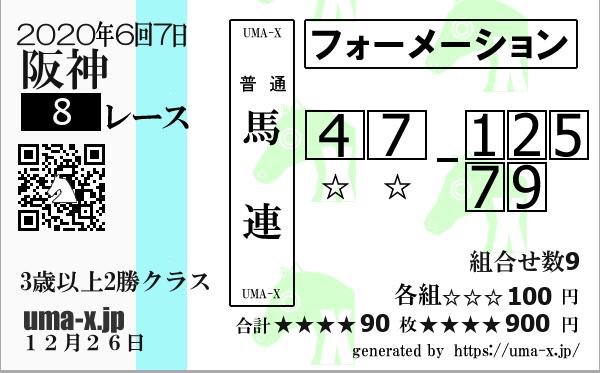 | 2020年 阪神 3上2勝クラス | 8 | 9 | 1 | 6 | 7 | 3 | 4 | 2 | 8 | 5 | 8 | 3 | 1 | 7 | 6 | 3 | 4 | 8 | 2 | 5 | 8 | 3 | 2 | 5 | 9 | 2 | 3 | 8 | 5 | 4 | 4 | 3 | 1 | 8 | 2 |