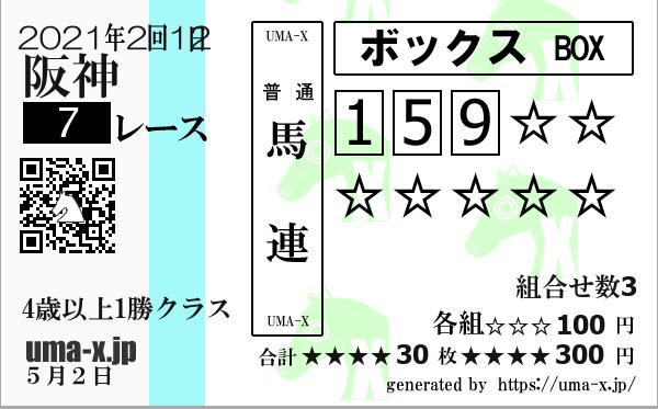 | 2021年 阪神 4上1勝クラス | 1 | 7 | 3 | 2 | 4 | 10 | 8 | 3 | 2 | 7 | 1 | 8 | 2 | 3 | 5 | 2 | 3 | 1 | 12 | 4 | 1 | 3 | 7 | 2 | 4 | 1 | 2 | 4 | 3 | 5 | 1 | 3 | 2 | 5 | 7 |