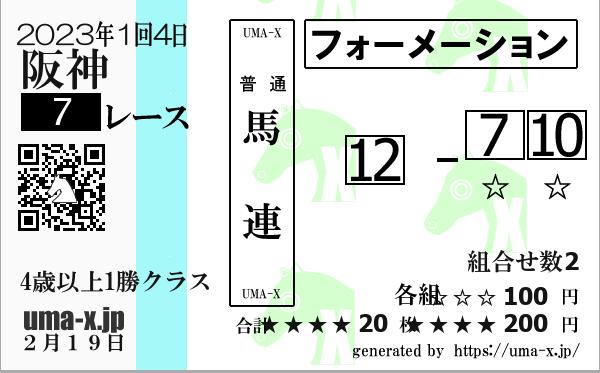 | 2022年 阪神 4上1勝クラス | 4 | 1 | 7 | 6 | 5 | 7 | 11 | 1 | 4 | 5 | 1 | 7 | 3 | 5 | 4 | 7 | 1 | 3 | 4 | 5 | 1 | 3 | 5 | 7 | 6 | 1 | 3 | 7 | 5 | 6 | 1 | 2 | 7 | 5 | 3 |