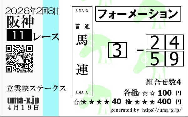 | 2024年 阪神 立雲峡S | 5 | 7 | 11 | 6 | 8 | 2 | 3 | 8 | 9 | 1 | 7 | 4 | 1 | 11 | 5 | 1 | 2 | 8 | 7 | 9 | 1 | 7 | 2 | 4 | 9 | 1 | 7 | 4 | 2 | 9 | 1 | 7 | 4 | 2 | 8 |